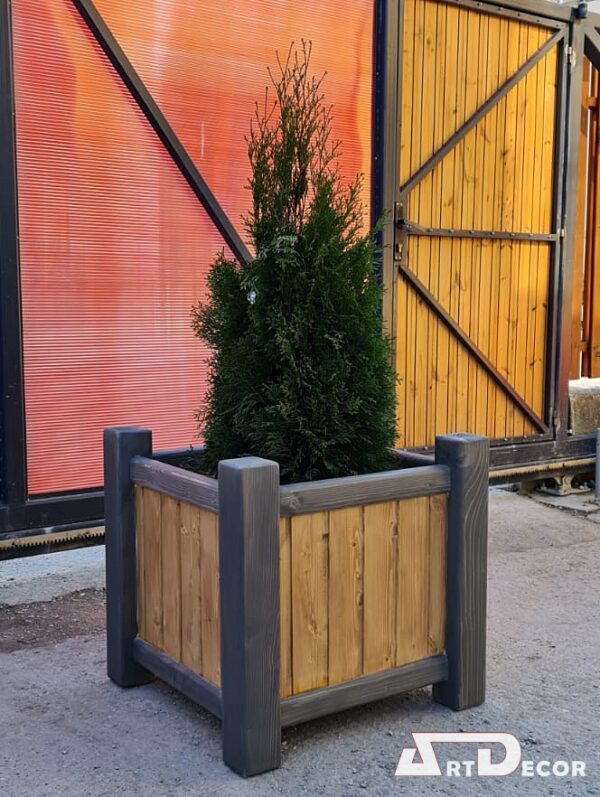 Jardiniera din lemn. Jardiniera din lemn marca Art Decor este realizata cu maiestrie pentru a oferi o nota de eleganta si functionalitate spatiului tau verde. Dimensiunile sale generoase de 62 cm lungime, 62 cm latime si 60 cm inaltime sunt ideale pentru a sustine cresterea sanatoasa a plantelor tale preferate.