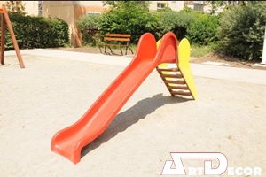 Topogan pentru copii realizat din poliester armat cu fibra de sticla. Structura: scarita metalica cu trepte din lemn tratat si laterale din plastic. Dimensiuni: L: 2,7 m; l: 0,5 m; H: 1.35 m. Suprafata de siguranta: 5,2 m x 3,5 m. Cod produs: EJTOB